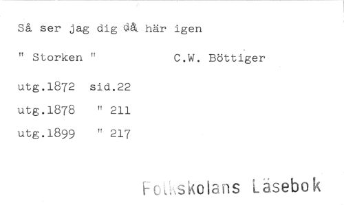 //// Så ser jag dig då. här igen //// " Storken " C.W. //// utg.1872 sid.22 utg.1878 " 211 utg.1899 " 217 //// Bottiger //// FoL,skotans Läsebok