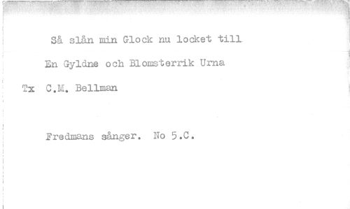 //// Så slån min Glock nu locket till En Gyldne och Blomsterrik Urna C.M, Bellman //// Fredmans sånger. No 5.C,