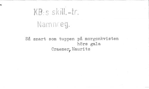//// K9.s sMi.-tr. //// Marti nreg. //// Så snart som tuppen på morgonkvisten //// hörs gala Craemer,Mauritz