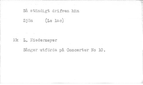 //// Så ständigt drifven hän Sjön (Lelac) //// L. Niedermeyer //// Sånger utförda på Concerter No 10.