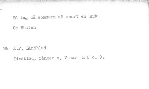 //// Så t gg då sonmam så snart en ända Om Hösten //// Mk A.F. Lindblad //// Lindblad, Sånger o. Visor H 8 o. 9.