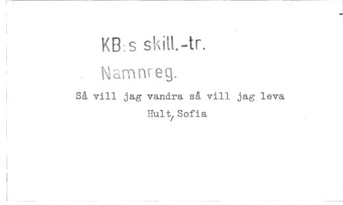 //// KB s sk)M.**tr. //// Mamnreg. //// vill jag vandra så vill jag leva Hult^ Sofia