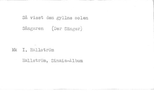 //// Så visst den gyllne solen Sångaren (Der Sänger) //// I. Hallström Hallström, Sinaia-Album
