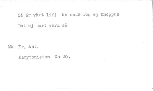 //// Så är vårt lifL En enda ros ej knoppas Det ej bort vara så //// Fr. Abt. //// Barytonisten No 20.