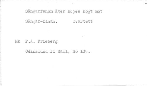//// Sångarfanan åter höjes högt mot Sångar-fanan. kvartett //// F.A, Frieberg //// Oåinslund II Sami, No 105.