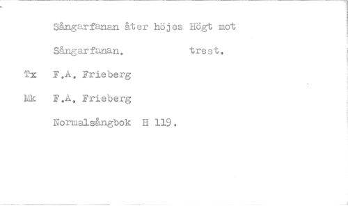 //// Sångarfanan åter höjes Högt mot Sångarfanan. trest, //// Tx F.A. Frie berg Mk F.A, Frieberg //// Nonnalsångbok H 119.