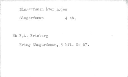 //// Sångarfanan åter höjes Sångarfanan 4 st. //// Mk F.A, Frieberg //// Kring Sångarfanan, 5 hft. No 67,