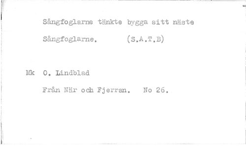 //// S&ngfoglarne tänkte bygga sitt näste Sångfoglarne. (S.A.T.B) //// 0, Lindblad //// Från När ocih Fjerran. No 26.