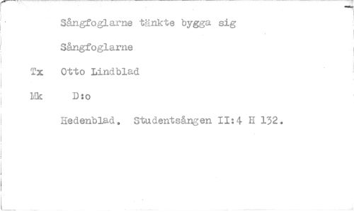 //// Sångfoglarne tänkte bygga sig Sångfoglarne Otto Lindblad D:o //// Hedenblad. Studentsången 11:4 H 132.