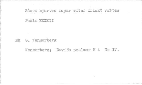 //// Såsom hjorten ropar efter friskt vatten Psalm XXXXII //// G, Wennerberg //// Wennerberg; Davids psalmer H 4 No 17.