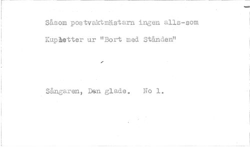 //// Såsom postvaktmästam ingen alls-som Kupletter ur "Bort med Stånden" //// Sångaren, Den glade. No 1.