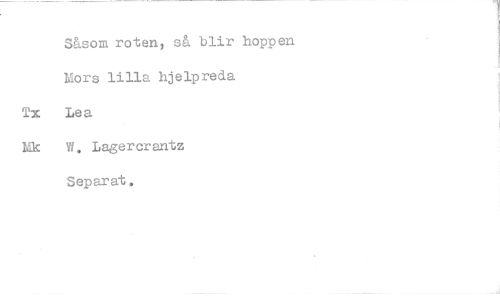 //// S&som roten, s& blir hoppen Mors lilla hjelpreda Tx Lea //// Mk W. Lagercrantz Separat,