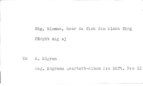 //// Säg, blomma, hvar du fick din klara färg Färgät mig ej //// A, Edgren //// Aug. Edgrens Qvartett-Album 2:a häft, N:o