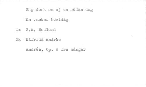 //// Säg dock om ej en s&dan dag En vacker höstdag Tx S.A. Hedlund Mk Elfrida Andrée //// Andrée, Op, 8 Tre sånger