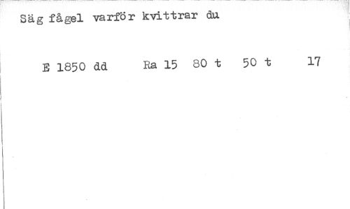 //// Säg fågel varför kvittrar du //// E 1850 dd Ra 15 80 t 50 t 17