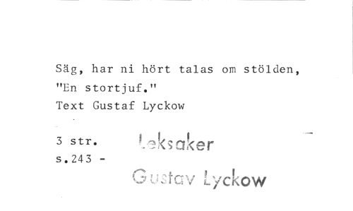 //// Säg, har ni hört talas om stölden, "En stortjuf." //// Text Gustaf Lyckow //// ^ str. s.243 - //// Gustav Lyckow