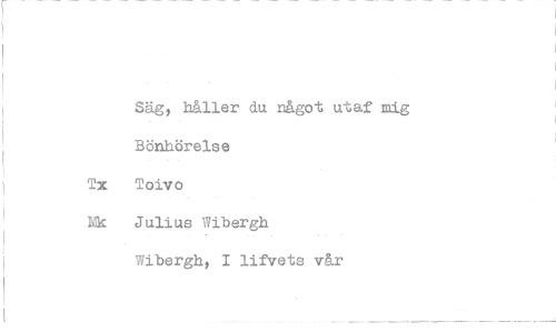 //// Säg, håller du något utaf mig Bönhörelse Tx Toivo Mk Julius Wibergh //// Wibergh, I lifvets vår