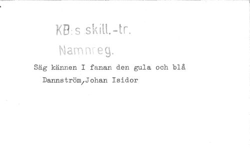 //// KB:s skiM.-tr. //// Narnnreg. //// Säg kännen I fanan den gula och blå Dannström/Johan Isidor