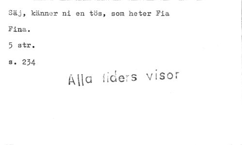 //// Säj, känner ni en tös, som heter Fia Fina. //// 5 str. //// s. 234 //// i ide. s visor