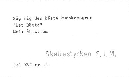 //// Säg mig den bästa kunskapsgren "Det Bästa" //// Mel: Ahlström //// Skaidestycken S,!. M, //// Del XVI,nr 14