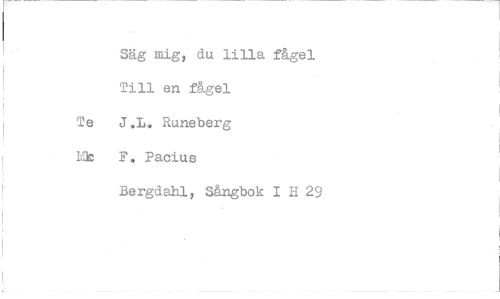 //// Säg mig, du lilla f&gel Till en fågel J.L. Runeberg //// F. Pacius //// Bergdahl, Sångbok I H 29