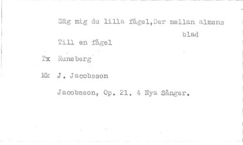 //// Säg mig du lilla fågel,Der mellan almens //// blad //// Till en fågel Tx Rune berg Mk J. Jacobsson //// Jacobsson, Op. 21, 4 Nya Sånger.