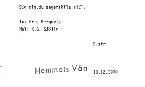 //// Säg mig,du segersälla själ. //// Tx: Eric Bergqvist Mel: K.G. Sjölin //// 9.str //// Hemmets Vän , //// 10.12.1970