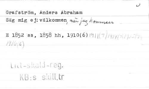 //// Grafström, Anders Abraham Säg mig e j: välkommen ^^ //// E 1852 ss, 1858 hh, ^ //// L s t ^3. ^ ^ r ^ ^ ^ //// HB:S ski!Ltr