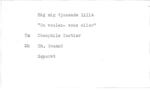 //// Säg mig tjusande lilla "Ou voulezt- vous aller" Tx Theophile Gautier Mk Ch. Gounod Saparat