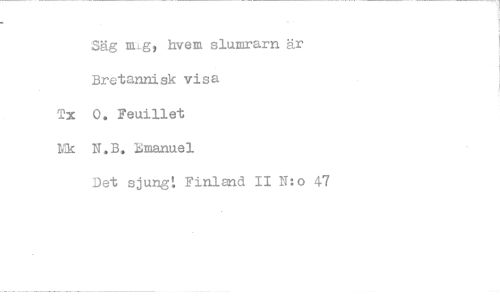 //// Säg m.Lg, hvem slumrarn är Bretannisk visa Tx 0, Feuillet Mk N,B. Emanuel //// Det sjungt Finland II N:o 47