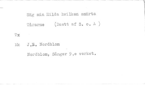 //// Säg min Hilda hvilken smärta Tårarne (Duett af S, o, A ) //// Tx //// Hk J.B. Nordblom //// Nordblom, S&nger 9.e verket.