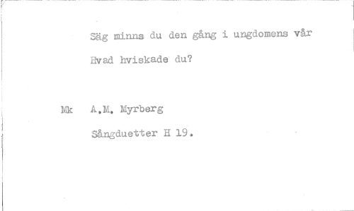 //// Säg minna du den gång i ungdomens Hvad hviskade du? //// A.M. Myrberg Sångduetter H 19.