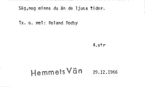 //// Säg,nog minns du än de ljusa tider. Tx. o. mel: Roland Rodby //// 4.str //// MemmetsVan 29.12.1966