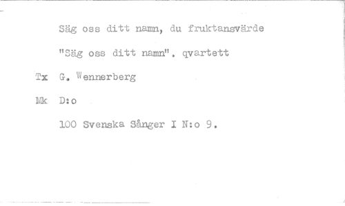 //// Säg oss ditt namn, du fruktansvärde "Säg oss ditt namn". qvartett Tx G. Wgnnerberg Mk D:o //// 100 Svenska Sånger I N:o 9.