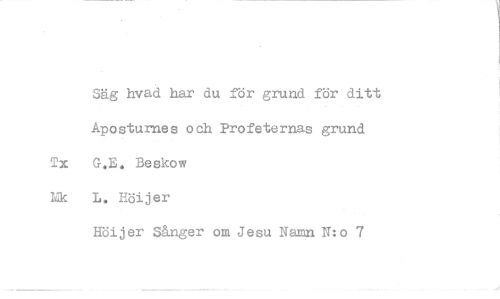 //// Säg hvad har du för grund för ditt Apostumes och Profeternas grund Tx G.E. Beskow Kk L. Höijer //// Höijer Sånger om Jesu Namn N:o 7