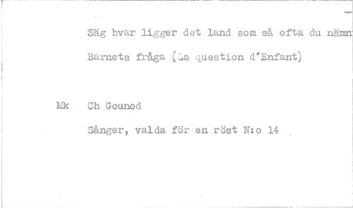//// Säg hvar ligger det land som s& ofta du nämn Barnets fråga ([,a question d'Enfant) //// Mk Ch Gounod //// Sånger, valda för en röst N:o 14