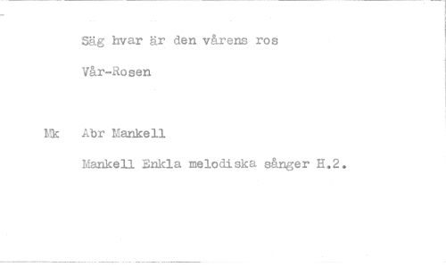 //// Säg hvar är den vårens ros Vår-Rosen //// Hk Abr Mankell //// Mankell Enkla melodiska sånger H.2.