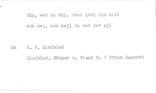 //// Säg, vet du väl, Hvad qval din bild Ack nej, ack nejL Du vet det ej t //// Kk A. F, Lindblad //// Lindblad, Sånger o. Visor H. 5 äfven Separat