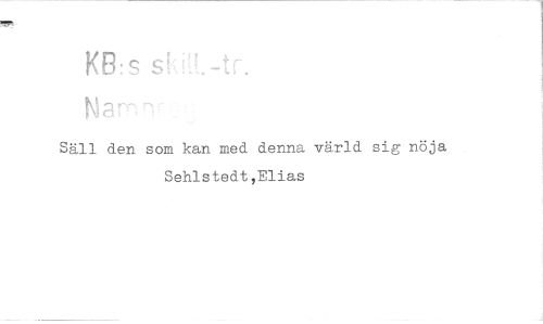 //// KB:S S //// Säll den som kan med denna värld sig nöja Sehlstedt,Elias