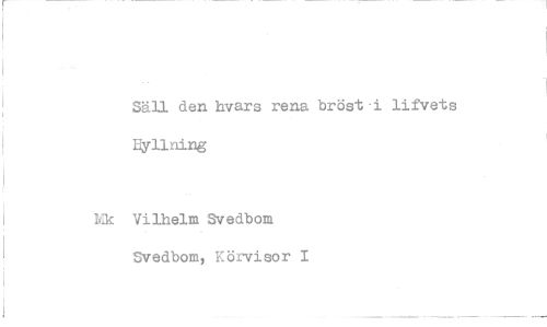 //// Säll den hvars rena bröst i lifvets //// Urllning //// Vilhelm Svedbom //// Svedbom, Horvisor I