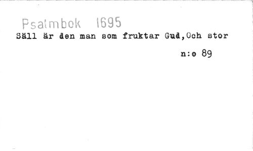 //// Fsatmbok 1695 //// Säll är åen man som fruktar &aå,0ch stor //// n:o 89