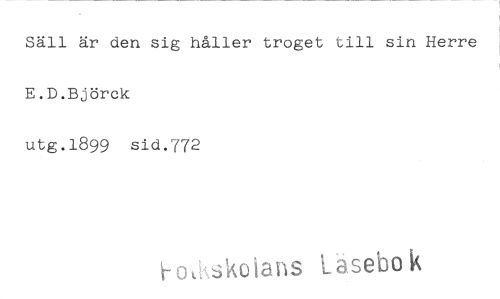 //// Säll är den sig håller troget till sin Herre E.D.Björck utg.1899 sid.772 //// skoians Läsebok