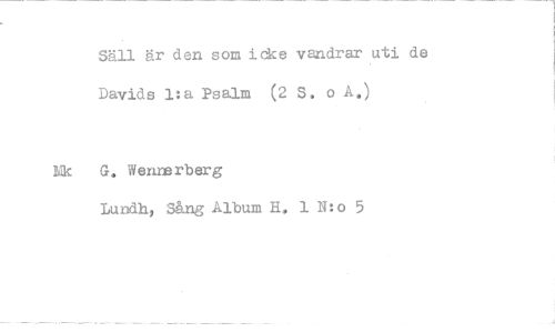 //// Säll är den som icke vandrar uti de //// Davids l:a Psalm (2 S, o A.) //// G. Wennerberg //// Lundh, Sång Album H, 1 N:o 5