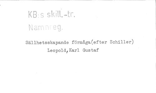 //// KB:sskiH.-tr. //// Namn' 3 g. //// Sällhetsskapande förmåga(efter Schiller) Leopold,Karl Gustaf