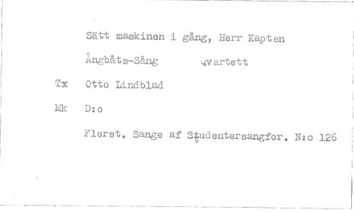 //// Sätt maskinen i gång, Herr Kapten Ångbåts-Sång -^vartett //// Tx Otto Lindblad Mk D:o //// Flerst. Sange af Studentersangfor. N:o 126