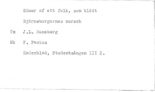 //// Söner af ett folk, som blödt Bjömeborgarnes marsch Tx J.L, Runeberg Mk F. Pacius //// Hedenblad, Studentsången 111 2,