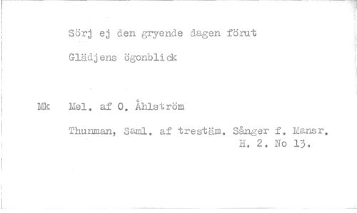 //// Sörj ej den gryende dagen förut Glädjens ögonblick //// Mel. af 0, Åhlström //// Thunman, Sami. af trestäm. Sånger f. Mansr. //// H. 2. No 13.