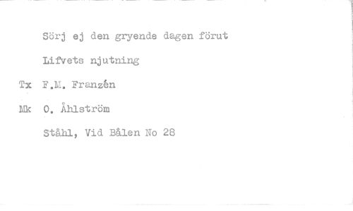 //// Sörj ej den gryende dagen förut Lifvets njutning Tx F.M. Franzén Mk 0. Åhlström //// St&hl, Vid B&len No 28