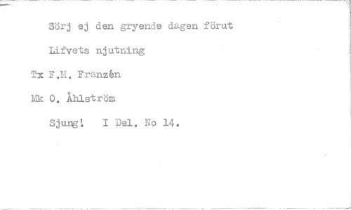 //// Sörj ej den gryende dagen förut Lifvets njutning Tx F,H. Franzén Mk 0. Åhlström //// Sjungt I Del, No 14.