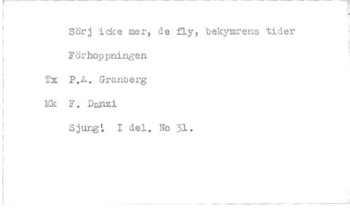 //// Sörj icke mer, de fly, bekymrens tider F örhoppningen Tx P.A, Granberg Mk F. Danzi //// Sjur^ I del. No 31.